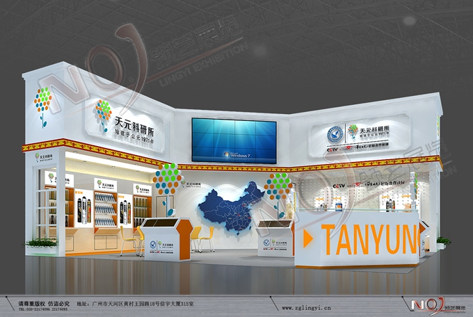 契合天元的品牌形象和產(chǎn)品特性,采用矩形結(jié)構(gòu),再搭配燈具燈光的效果,襯托出展位高端、時(shí)尚的氛圍,突出一種現(xiàn)代、大氣的時(shí)尚品味。