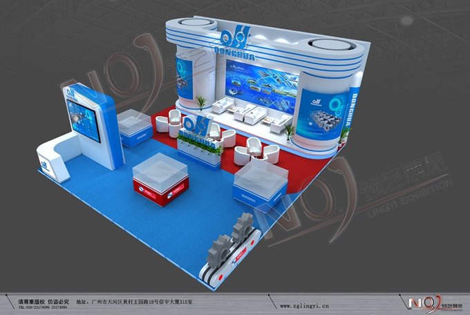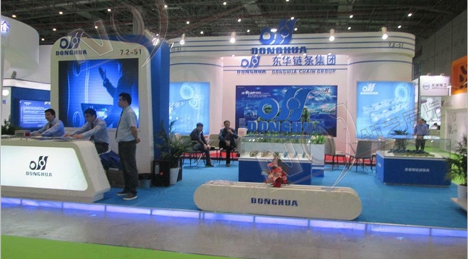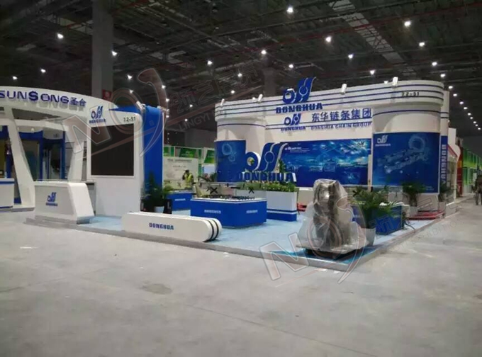 契合東華鏈條的品牌形象和產(chǎn)品特性,采用矩形結(jié)構(gòu),再搭配燈具燈光的效果,襯托出展位高端、時(shí)尚的氛圍,突出一種現(xiàn)代、大氣的時(shí)尚品味。