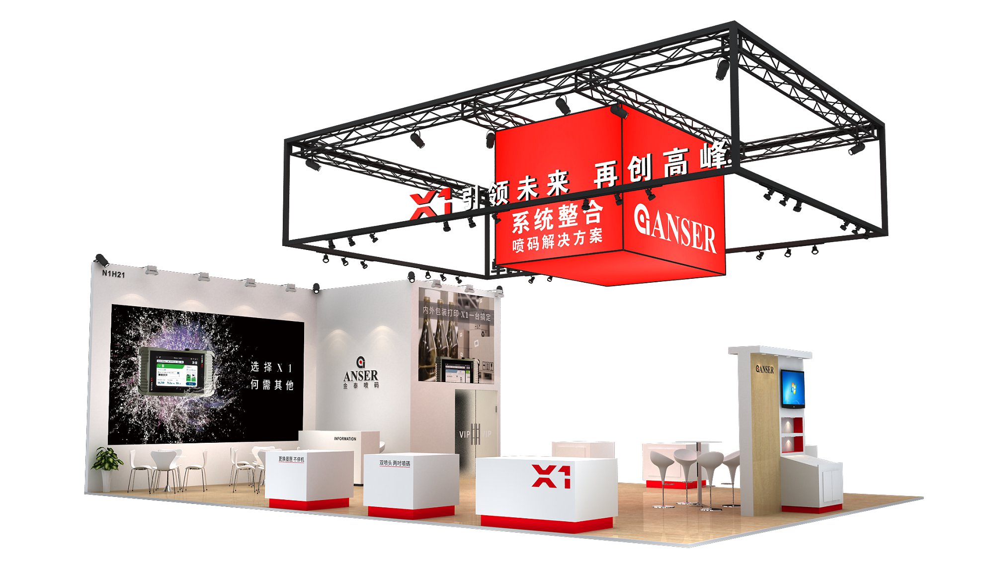 契合金泰噴碼的品牌形象和產(chǎn)品特性,采用開放式結(jié)構(gòu),再搭配燈具燈光的效果,襯托出展位大氣、豪華的氛圍,突出一種簡(jiǎn)約、時(shí)尚的品味。