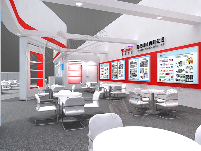 巧妙的運(yùn)用白色、紅色作搭配,著重突出品牌和產(chǎn)品的展示,使整個(gè)展位明亮又時(shí)尚。