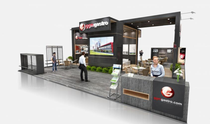 契合GGM的品牌形象和產(chǎn)品特性,采用矩形結(jié)構(gòu),再搭配燈具燈光的效果,襯托出展位大氣、豪華的氛圍,突出一種簡約、時(shí)尚的品味。