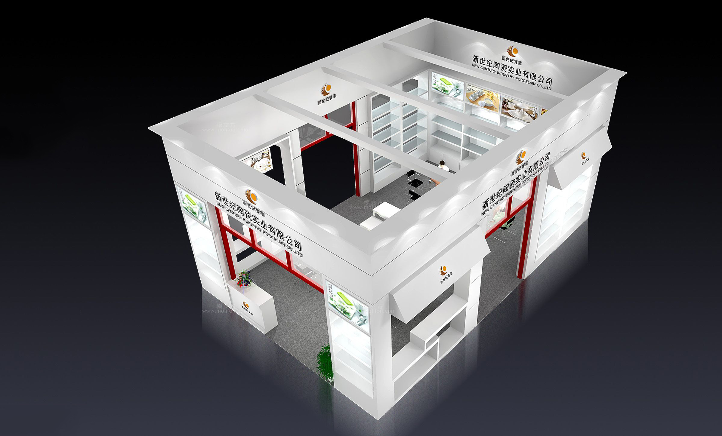 契合世紀(jì)新世紀(jì)陶瓷的品牌形象和產(chǎn)品特性,采用矩形結(jié)構(gòu),再搭配燈具燈光的效果,襯托出展位大氣、豪華的氛圍,突出一種簡約、時尚的品味。