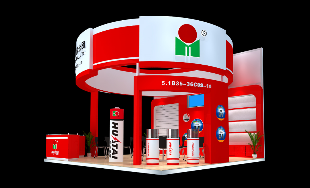 契合華太電池的品牌形象和產(chǎn)品特性,采用弧形、矩形結(jié)構(gòu),再搭配燈具燈光的效果,襯托出展位簡約、時尚的氛圍,突出一種現(xiàn)代、簡約的時尚品味。