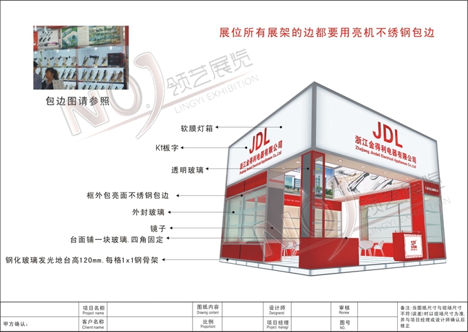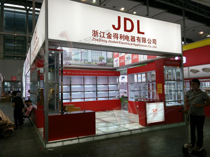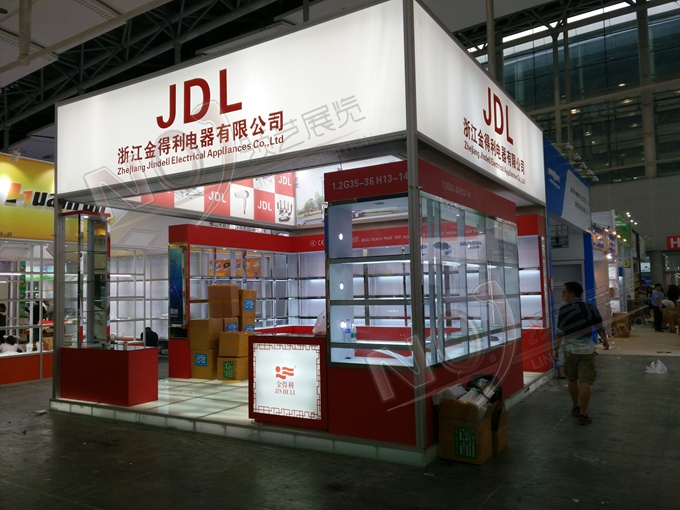 契合金得利集團(tuán)的品牌形象和產(chǎn)品特性,采用矩形結(jié)構(gòu),再搭配燈具燈光的效果,襯托出展位高端、時(shí)尚的氛圍,突出一種現(xiàn)代、大氣的時(shí)尚品味。