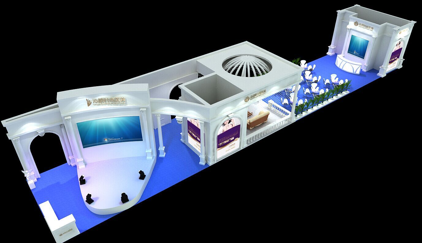 契合沁顏的品牌形象和產(chǎn)品特性,采用矩形結(jié)構(gòu),再搭配燈具燈光的效果,襯托出展位高端、時尚的氛圍,突出一種現(xiàn)代、大氣的時尚品味。