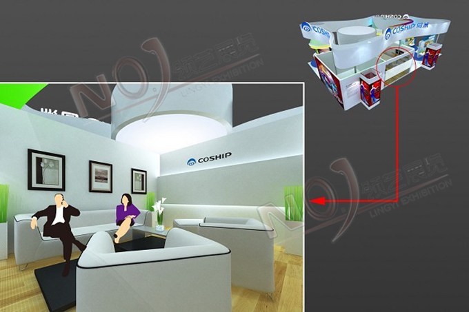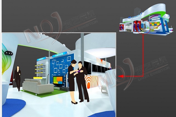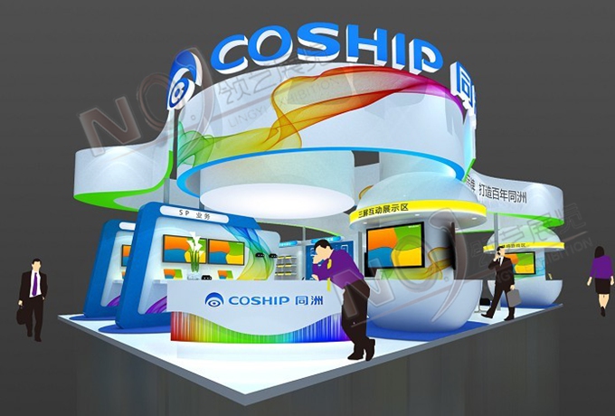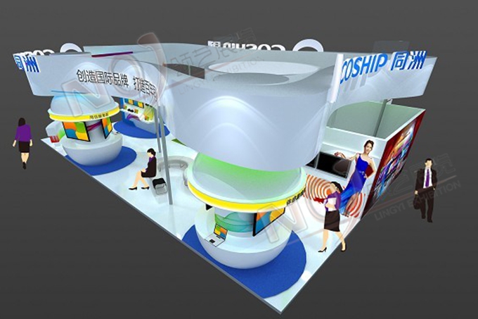 契合同洲電子的品牌形象和產(chǎn)品特性,采用曲線、框型結(jié)構(gòu),再搭配燈具燈光的效果,襯托出展位休閑、舒適的氛圍,突出一種躍動(dòng)、簡(jiǎn)約的時(shí)尚品味。