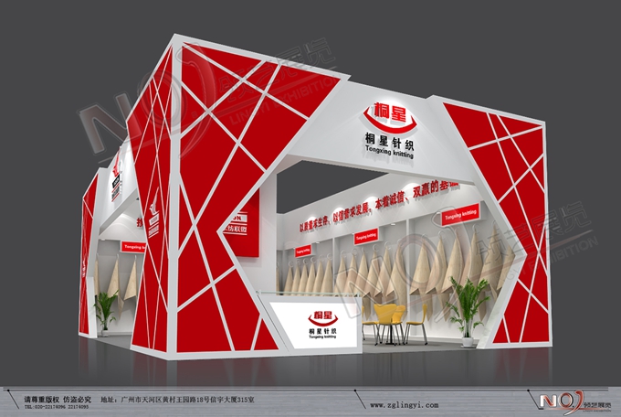 契合桐星針織的品牌形象和產(chǎn)品特性,采用框型結(jié)構(gòu),再搭配燈具燈光的效果,襯托出展位簡(jiǎn)約、便捷的氛圍,突出一種精致、簡(jiǎn)約的時(shí)尚品味。