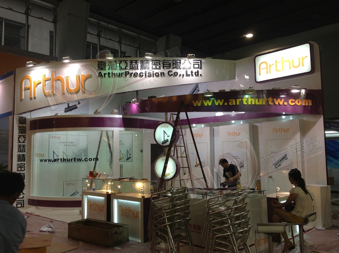契合亞瑟公司的品牌形象和產(chǎn)品特性,采用立體結(jié)構(gòu),再搭配燈具燈光的效果,襯托出展位簡約、方便的氛圍,突出一種精致、高端的時尚品味。