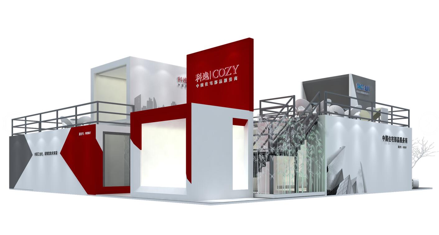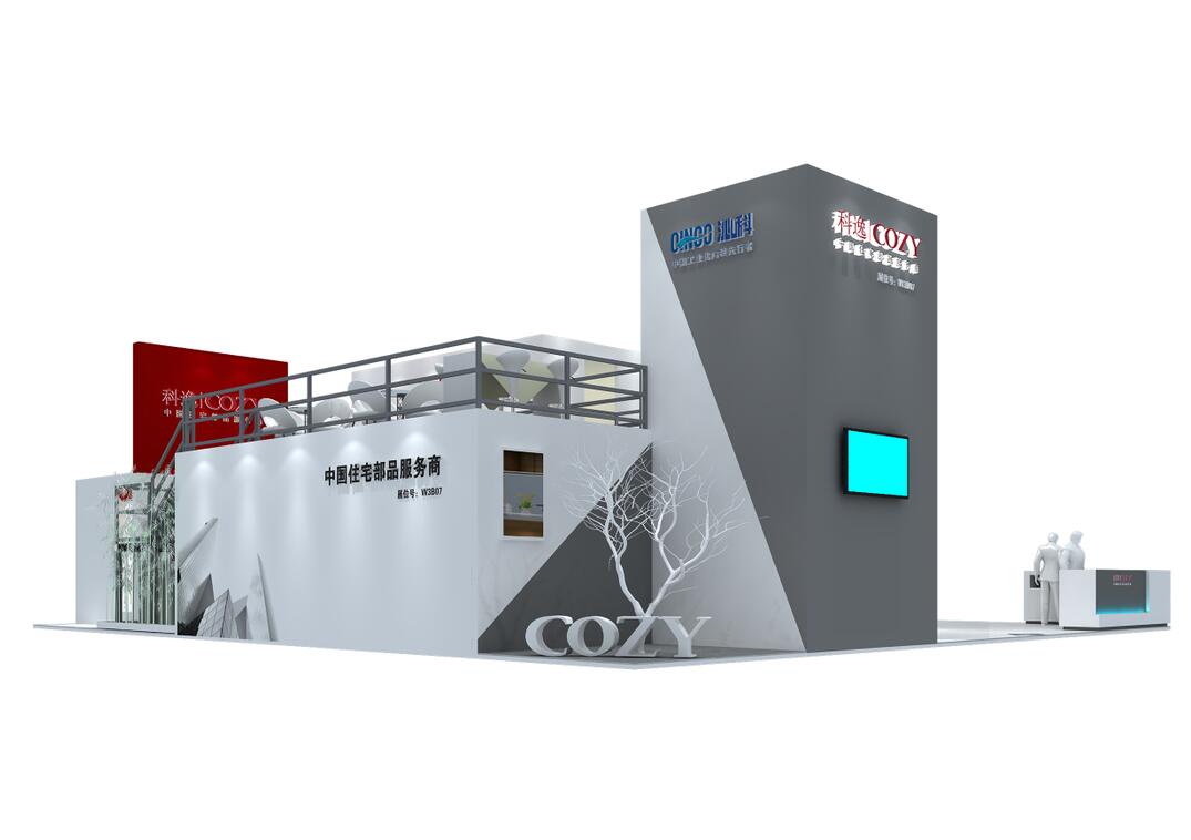 契合蘇州科逸品牌形象和產(chǎn)品特性,運(yùn)用雙層不對(duì)襯的效果。再搭配植物、燈具燈光的效果,襯托出展位現(xiàn)代、突出一種現(xiàn)代、高端的時(shí)尚品味。