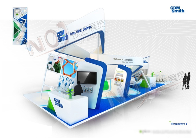 契合CDM Smith的品牌形象和產(chǎn)品特性,采用立體結(jié)構(gòu),再搭配燈具燈光的效果,襯托出展位高端、時(shí)尚的氛圍,突出一種現(xiàn)代、大氣的時(shí)尚品味。