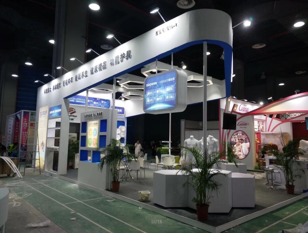 巧妙的運(yùn)用白色搭配藍(lán)色,突出品牌和產(chǎn)品的展示,使整個(gè)展位高檔大氣
