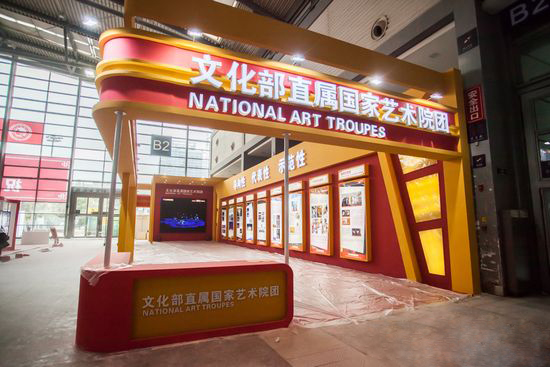文化部直屬9大國(guó)家院團(tuán)展區(qū)以“堅(jiān)持崇高藝術(shù)理想,塑造國(guó)家藝術(shù)形象”為主題,9大院團(tuán)的展示充分體現(xiàn)出導(dǎo)向性、代表性和示范性,展區(qū)設(shè)計(jì)顯得簡(jiǎn)潔大氣。