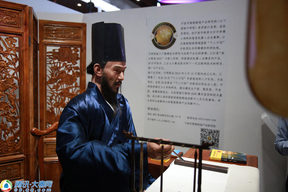 2016海交會,由教育部、科學技術部、中國科學院、國務院僑務辦公室、歐美同學會(中國留學人員聯誼會)、中共廣州市委、廣州市人民政府共同主辦,北京、上海、天津、重慶等27個城市(機構)協(xié)辦,大會以“聚英才,圓夢想,創(chuàng)未來”為主題,以“面向海內外,服務全中國”為宗旨。據介紹,本屆海交會展覽展示面積達23,000平方米,參會人數達到7000人,人數再創(chuàng)歷史新高。圖為造型逼真的機器人書法家正要揮毫。