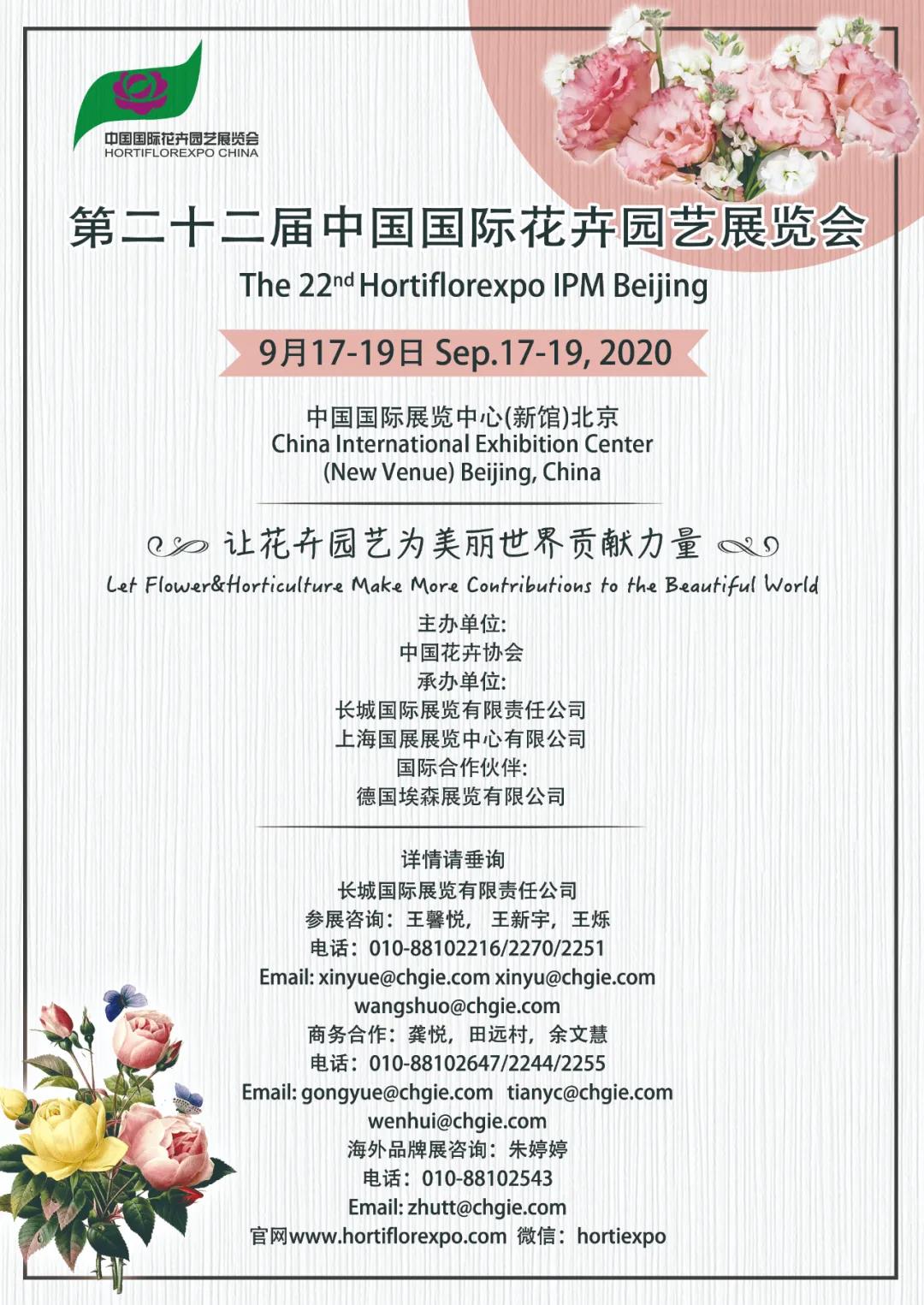 根據(jù)北京展會(huì)設(shè)計(jì)搭建公司領(lǐng)藝展覽了解到,原定于2020年4月7-9日在北京中國國際展覽中心(新館)舉行的第二十二屆中國國際花卉園藝展覽會(huì)及同期活動(dòng)延期至2020年9月17-19日舉辦。其中,搭建時(shí)間為9月15-16日,展期為9月17-19日。如需北京展會(huì)設(shè)計(jì)請(qǐng)聯(lián)系領(lǐng)藝展覽,希望我們能在北京展會(huì)搭建上為您添磚加瓦,祝各位朋友收獲多多,滿載而歸!