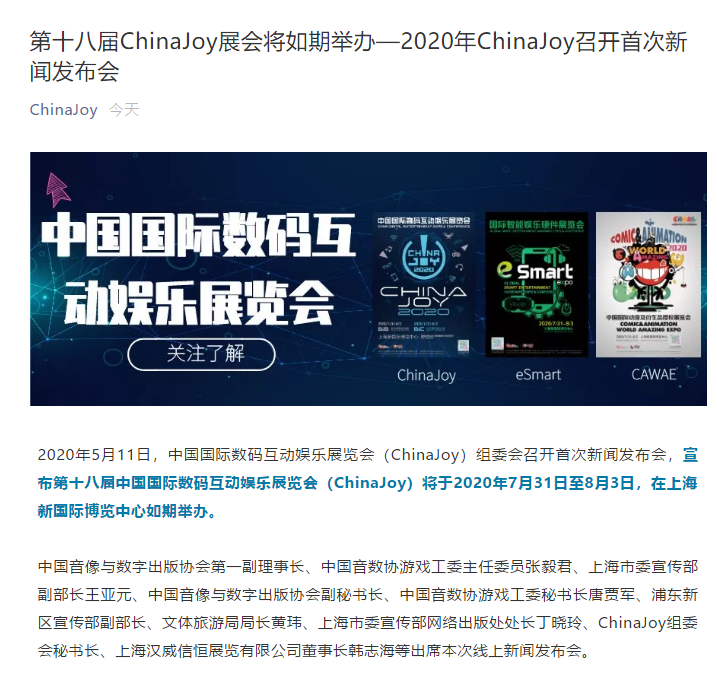 上海ChinaJoy游戲展設(shè)計搭建公司領(lǐng)藝展覽了解到,2020年5月11日,中國國際數(shù)碼互動娛樂展覽會(ChinaJoy)組委會召開首次新聞發(fā)布會,宣布第十八屆中國國際數(shù)碼互動娛樂展覽會(ChinaJoy)將于2020年7月31日至8月3日,在上海新國際博覽中心如期舉辦。如需展會設(shè)計請聯(lián)系領(lǐng)藝展覽,希望我們能在上海展會搭建上為您添磚加瓦,祝各位朋友收獲多多,滿載而歸!