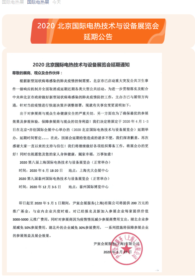 根據(jù)北京電熱展設(shè)計(jì)搭建公司領(lǐng)藝展覽了解到,因受新型冠狀病毒肺炎疫情的影響,結(jié)合當(dāng)前疫情進(jìn)展情況,為進(jìn)一步配合各級政府做好疫情防控工作,GJDR2020 北京國際電熱技術(shù)與設(shè)備展覽會將延期舉行。如需北京電熱展設(shè)計(jì)請聯(lián)系領(lǐng)藝展覽,希望我們能在北京電熱展搭建上為您添磚加瓦,祝各位朋友收獲多多,滿載而歸!