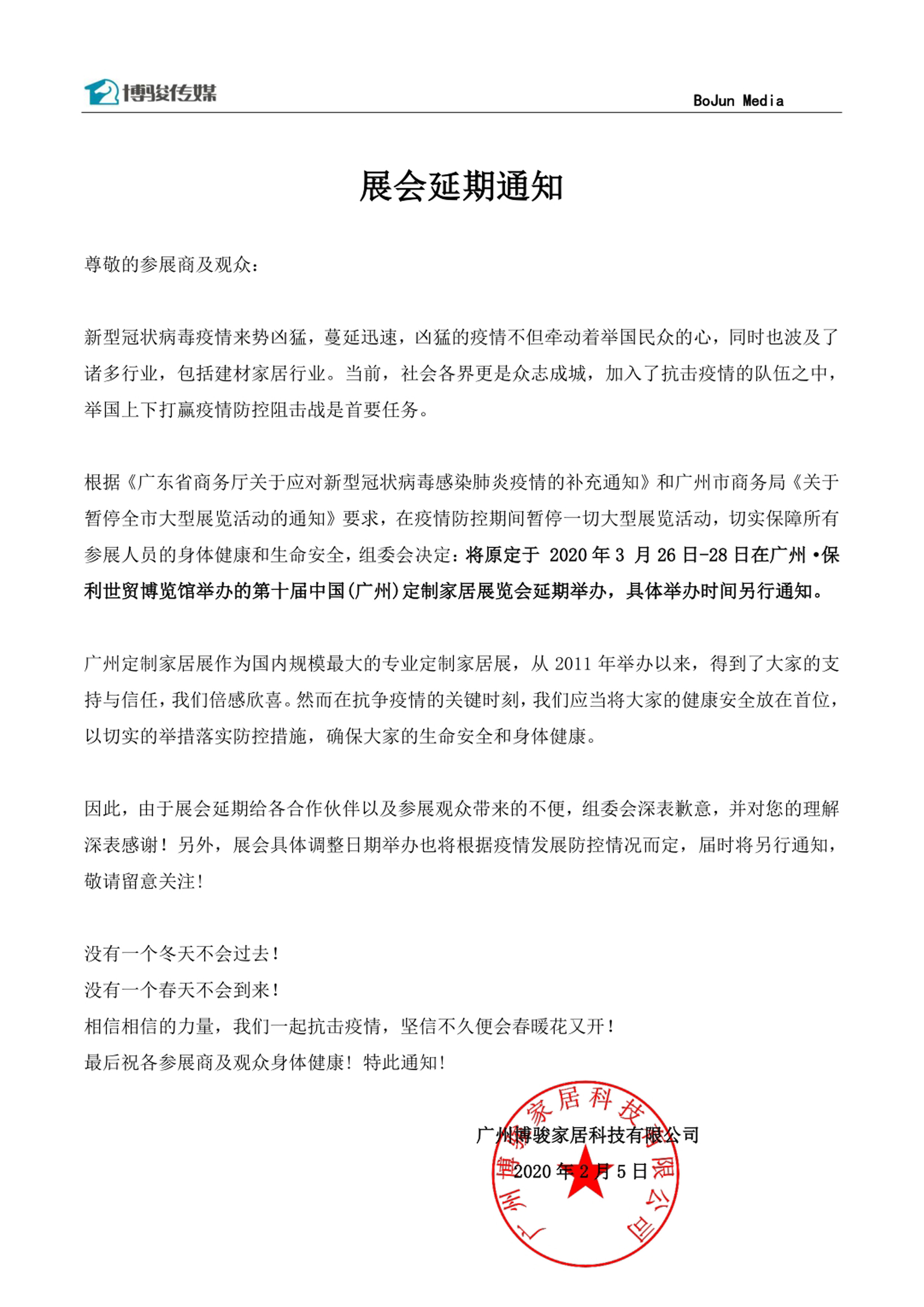 根據(jù)廣州定制家具展設(shè)計搭建公司領(lǐng)藝展覽了解到,將原定于 2020年3 月26日-28日在廣州·保利世貿(mào)博覽館舉辦的第十屆中國(廣州)定制家居展覽會延期舉辦,具體舉辦時間另行通知。如需廣州定制家具展設(shè)計請聯(lián)系領(lǐng)藝展覽,希望我們能在廣州定制家具展搭建上為您添磚加瓦,祝各位朋友收獲多多,滿載而歸!