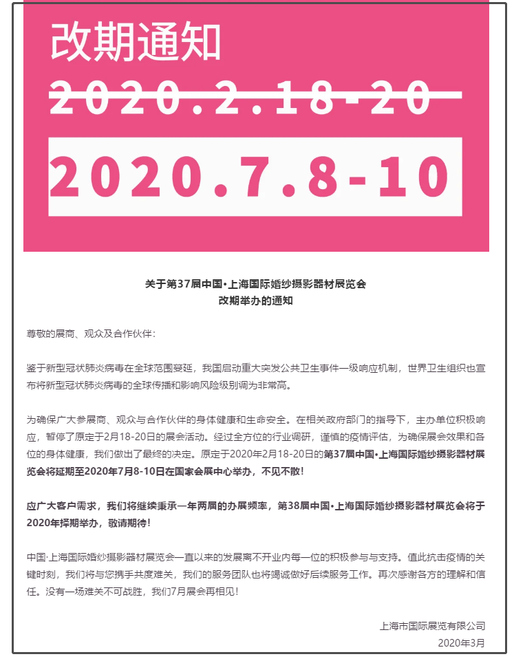 關(guān)于2020春上海國(guó)際兒童攝影展的改期通知