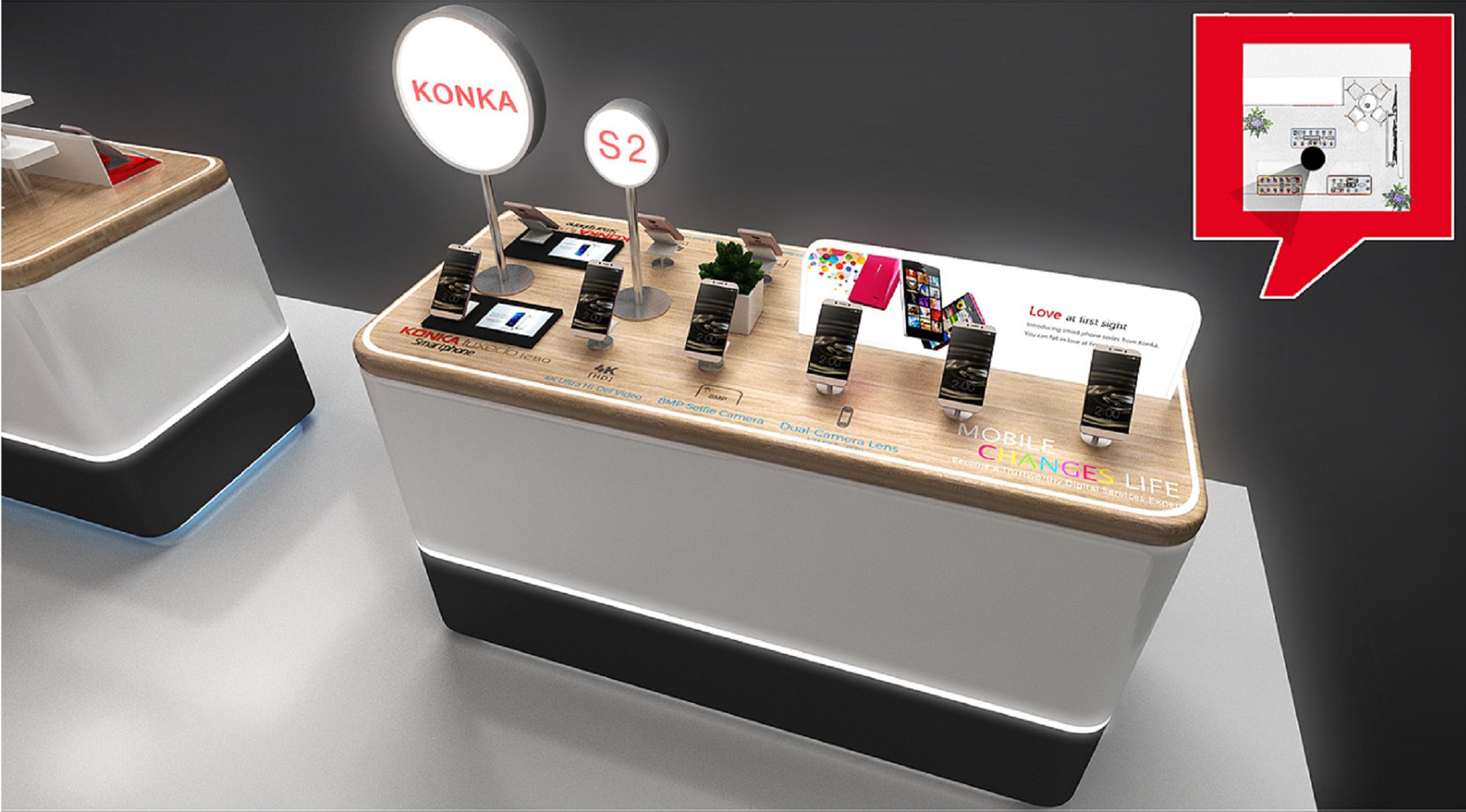 巧妙的運(yùn)用科技燈光作搭配,著重突出品牌和產(chǎn)品的展示,使整個(gè)展廳時(shí)尚新穎巨有活力。